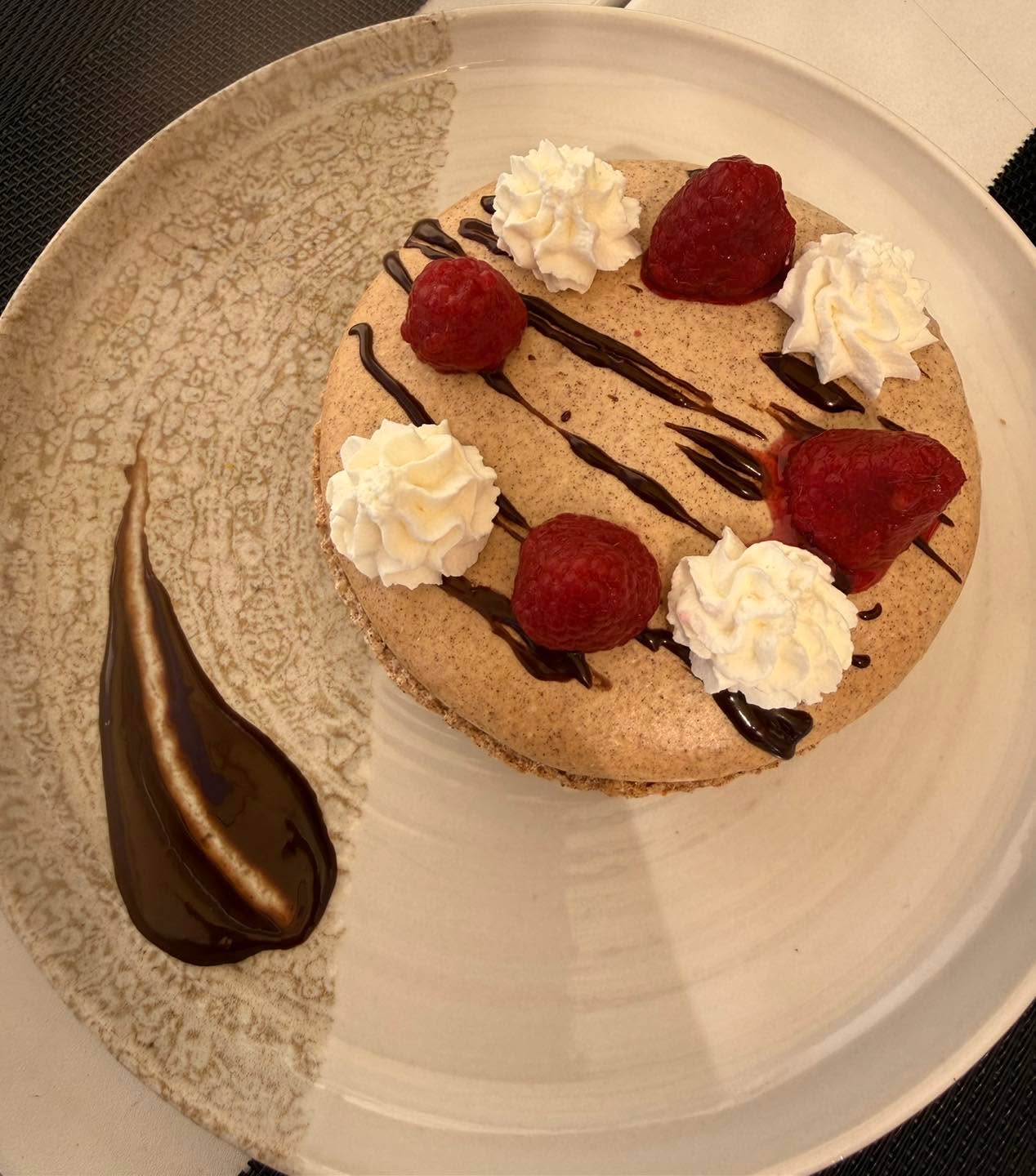 La pavlova est un dessert à base de meringue, nappé du coulis du moment, une boule de glace entouré de crème mascarpone et zeste de citron