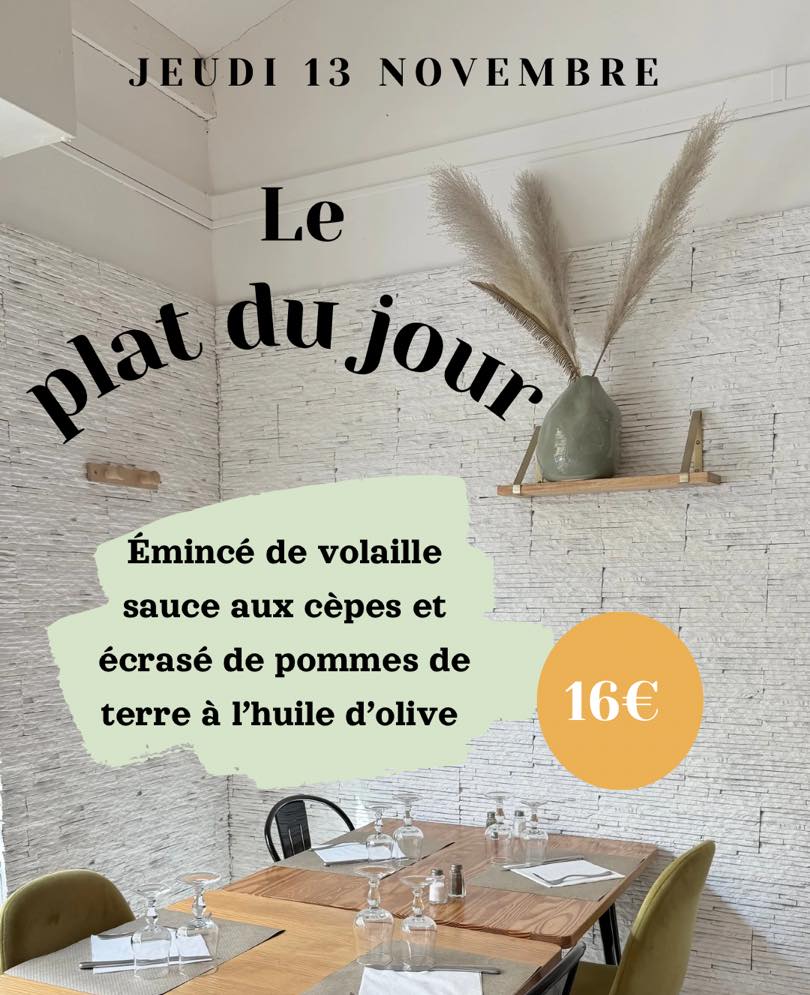 Ce midi à l’Impro !Émincé de volaille sauce aux cèpes Accompagné d’un écrasé de pommes de terre à l’huile d’olive 🥔️ Demain midi moules et frites maison 16 € sur place🥡 -10 % à emporter ! ZAC du , s 04 94 04 28 79.