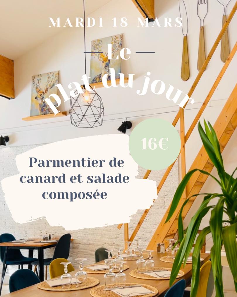 Ce midi à l’Impro : Parmentier de canard et salade composée 16€–10% à empoter.