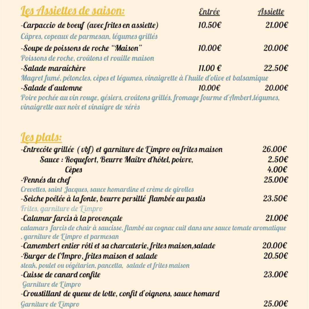 Ce midi à l’Impro !Émincé de volaille sauce aux cèpes Accompagné d’un écrasé de pommes de terre à l’huile d’olive 🥔️ Demain midi moules et frites maison 16 € sur place🥡 -10 % à emporter ! ZAC du , s 04 94 04 28 79.