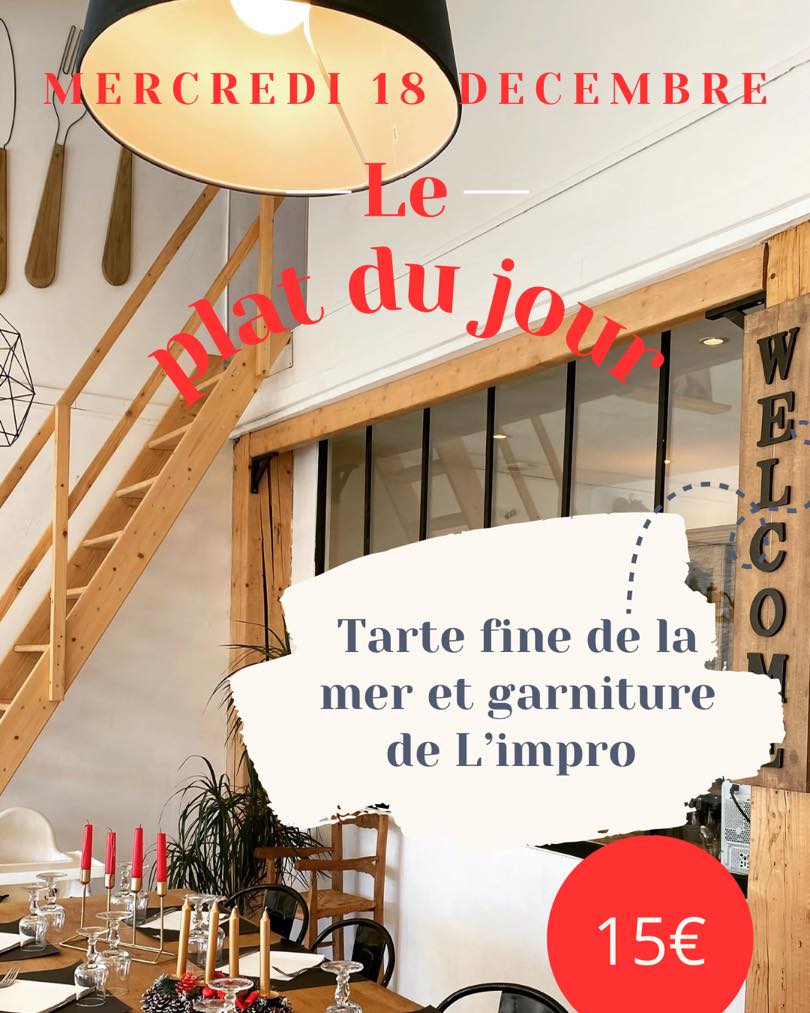 Ce midi à l’Impro -Tarte fine de la mer et garniture de l’Impro 15€ zac du.