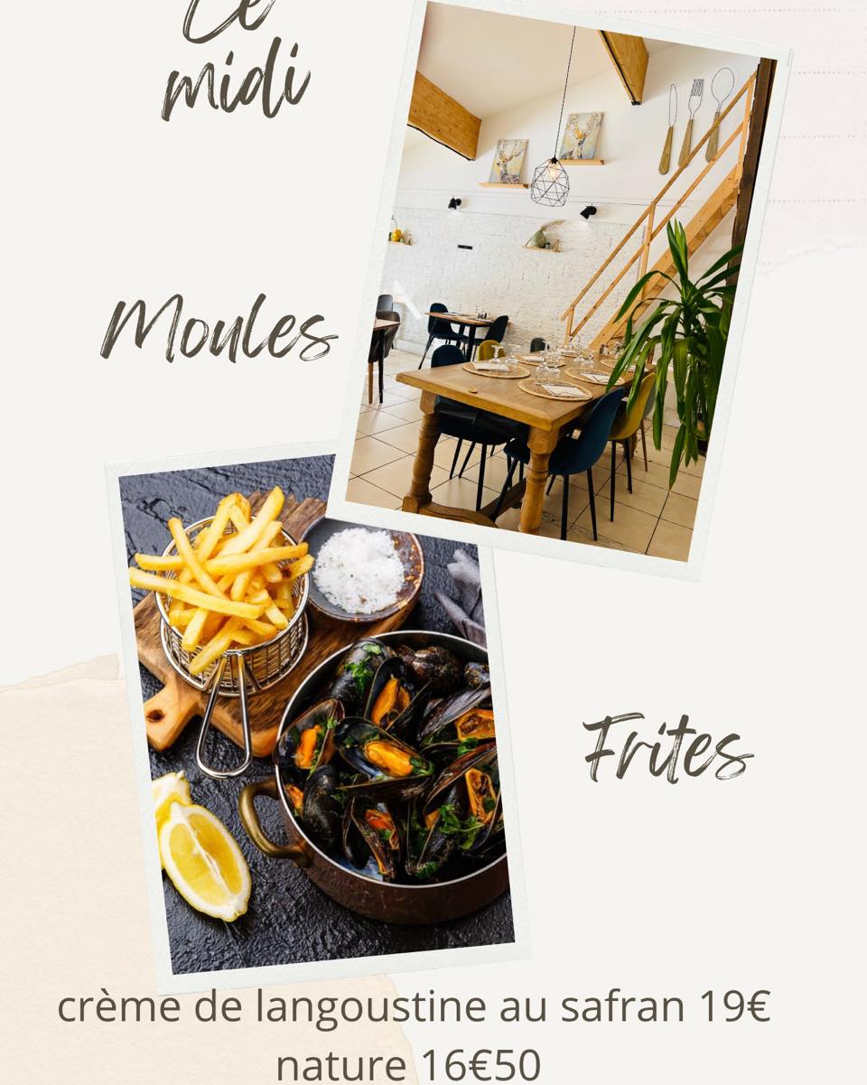 Ce midi à l’Impro -Moules et frites maison -Crème de langoustine au safran 19€ -Nature 16€50 Pensez à réserver 04.94.04.29.79.