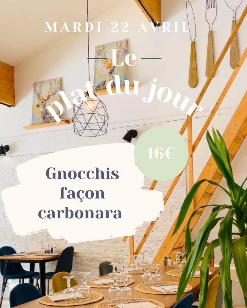 Ce midi à l’Impro -Gnocchis façon carbonara 16€ N’hésitez pas à réserver le plat du jour pour l’emporter –10%.