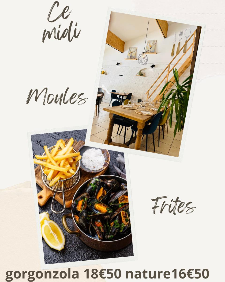Ce midi à l’Impro : Moules frites Gorgonzola 18€50 Nature 16€50 Zac du Frey Redon.