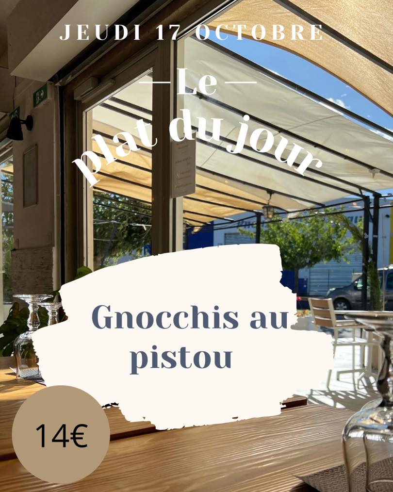 Ce midi à l’Impro – Gnocchis au pistou 14€ Zac du Frey Redon.