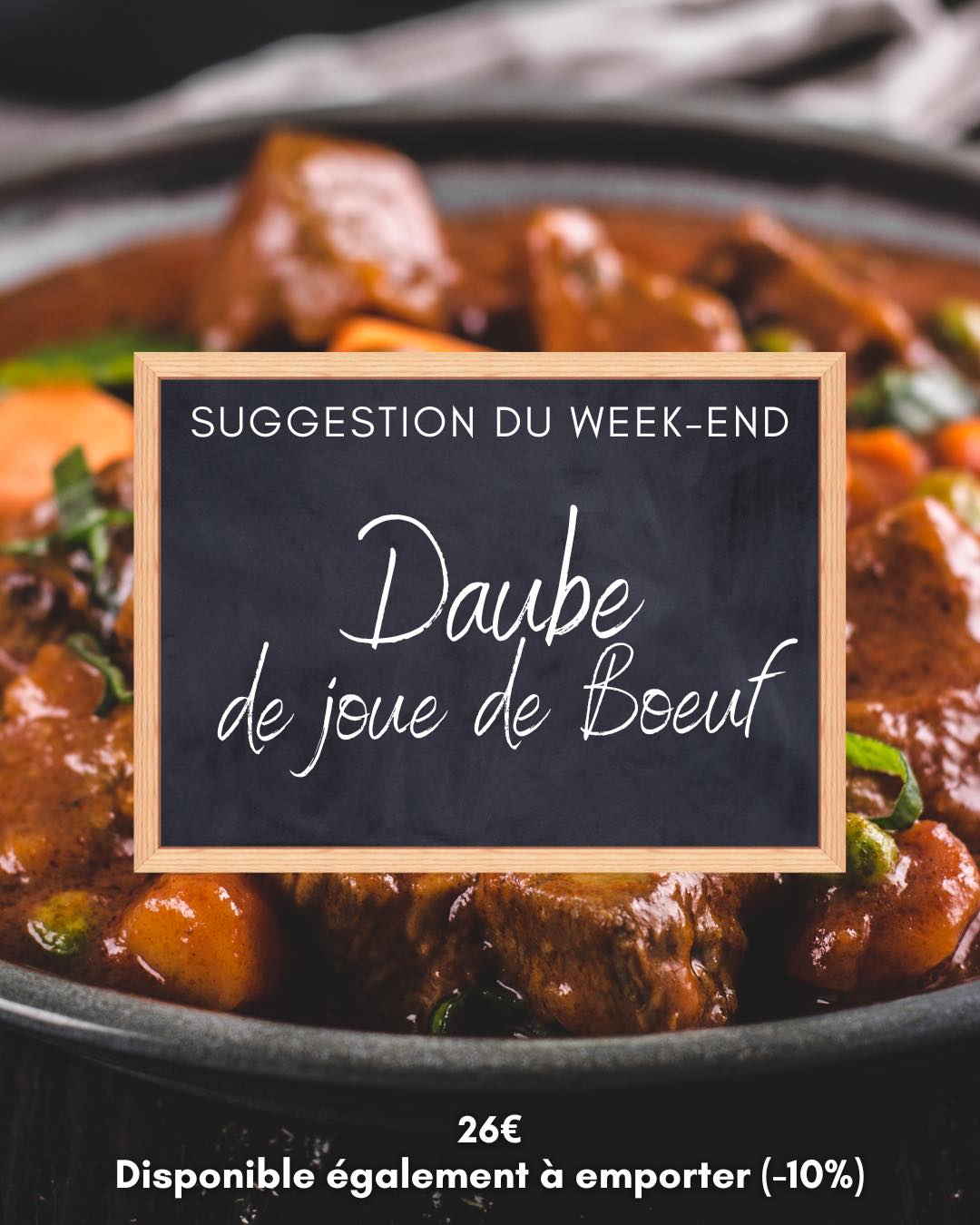 Suggestion du Week-end à l’Impro Daube de joue de bœuf ! 26€ – disponible également à emporter (–10%)Pensez à réserver au Zac de , _____________________________________________.