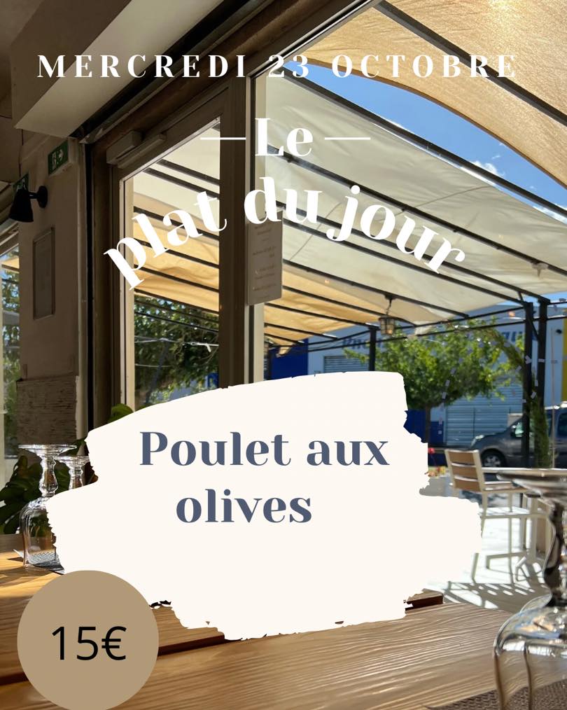 Ce midi à l’Impro -Poulet aux olives 15€ Zac du Frey Redon.