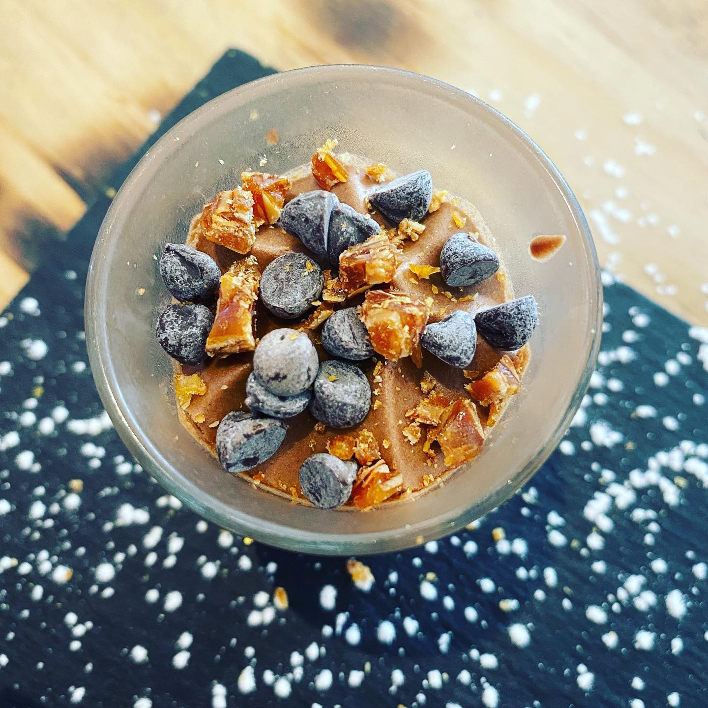 Café gourmand : Marquise revisité par le chef pépites de chocolat et éclats de nougatine pour le café gourmand.