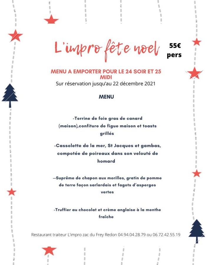 🍽️ ce midi à l’Impro, nous vous proposons nos moules fraîches accompagnées de frites maison.préparées à la minute, elles sont sélectionnées pour leur qualité et nos frites sont coupées et cuites sur place pour garantir un vrai goût authentique. deux recettes au choix •moules nature 16,50 €•moules crème de homard au safran 18,50 €une version plus gourmande, légèrement iodée et parfumée, pour ceux qui aiment se faire plaisir. pensez à réserver 04 94 04 28 79 zac du fray redon, 83136 rocbaron.