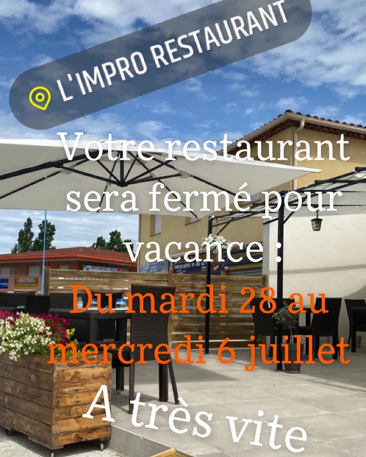 Votre restaurant sera fermé : Du mardi 28 juin au mercredi 7 juillet inclus On se retrouve très vite.