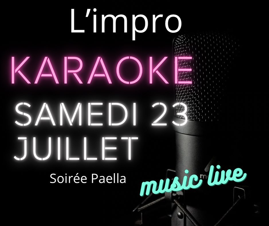 Soirée karaoké à l’Impro : Samedi 23 juillet Pensez à réserver Partager un max Menu paella 🥘.