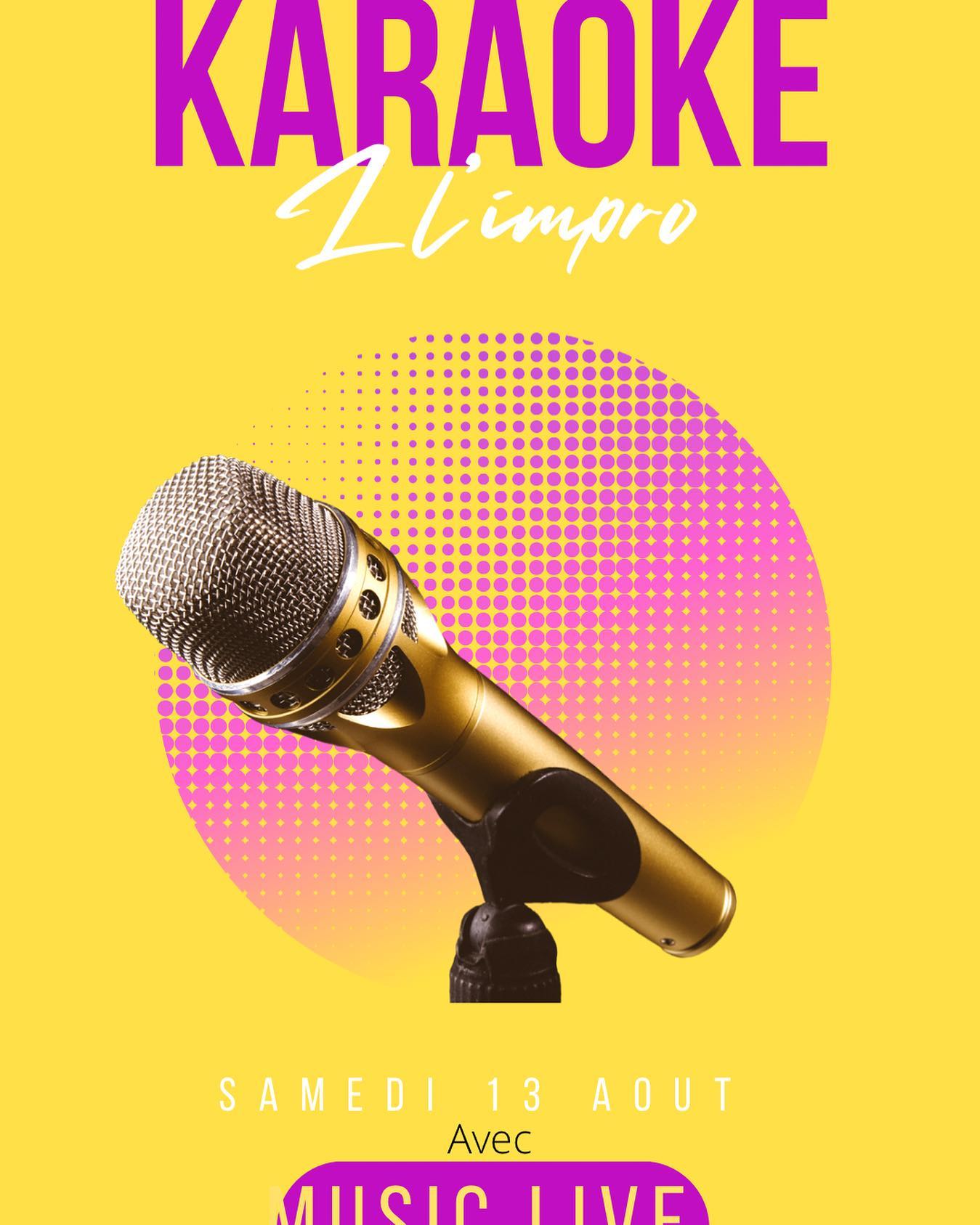 Le samedi 13 août Karaoké à l’ImproAvec music live Pensez à réserver votre table.