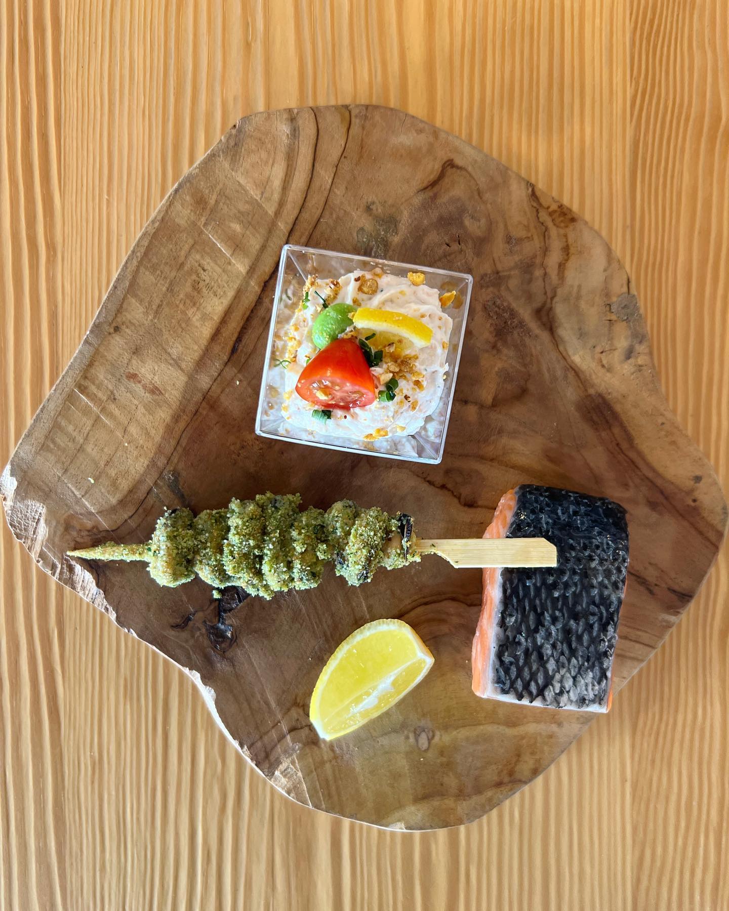 Plat du jour à l’Impro Trio de la mer Mousseline de saumon, brochette de moules et demi pavé de saumon mi cuit. Accompagné de salade et frites maison. Pensez à réserver au _____________________________________________.