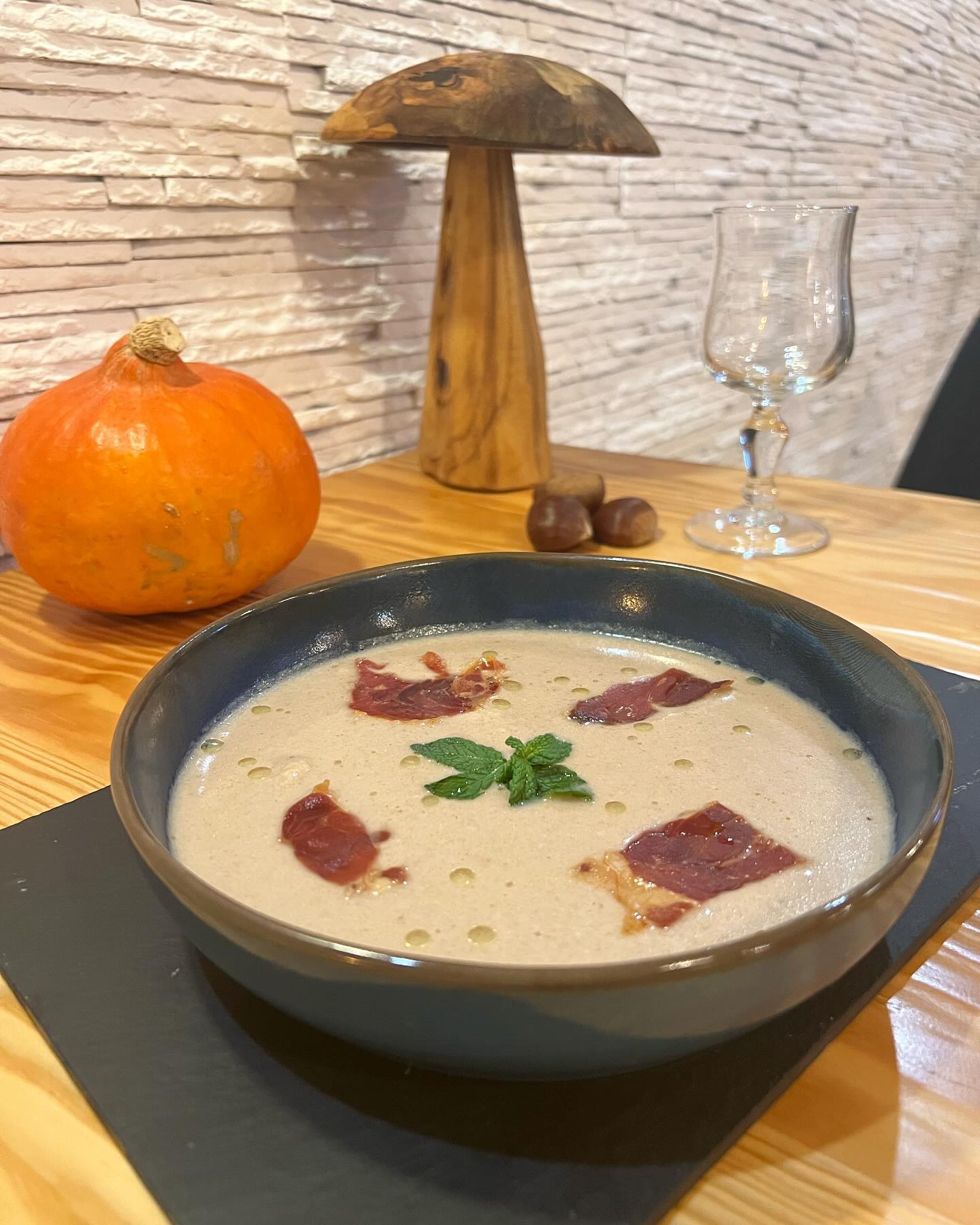 Velouté de châtaignes et chips de jambon cru ! Venez le déguster dès ce midi à l’Impro !.Pensez à réserver au Zac de , _____________________________________________.