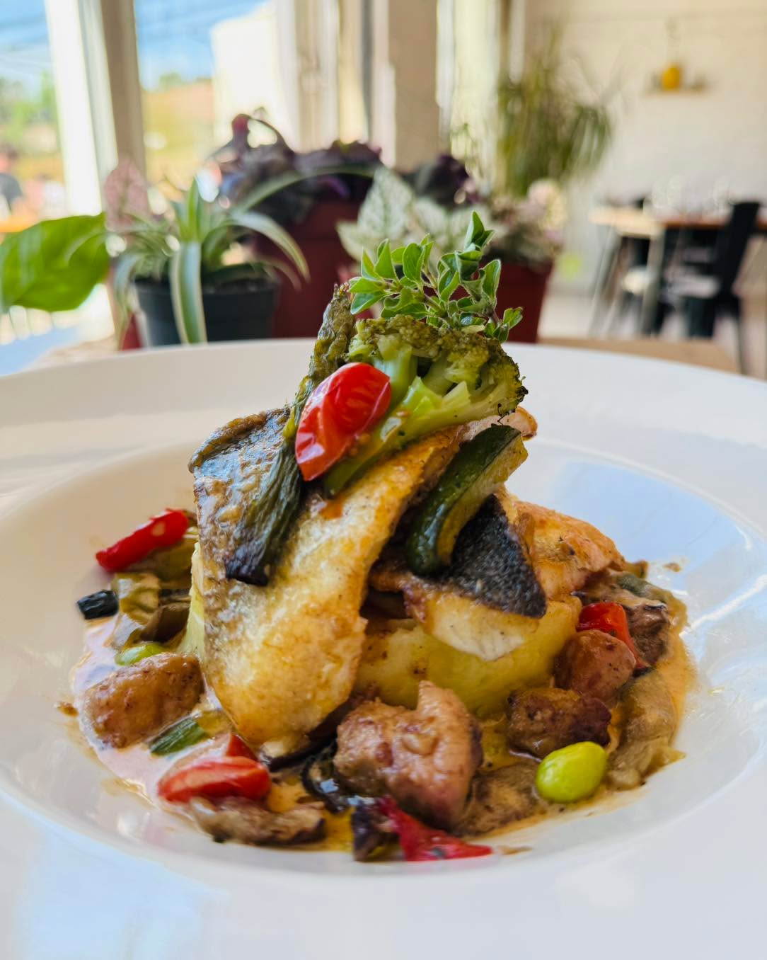 Suggestion du week-end 32€ Filet de bar poêlé à la bisque de homard et pépites de foie gras Pensez à réserver au Zac de , _____________________________________________.